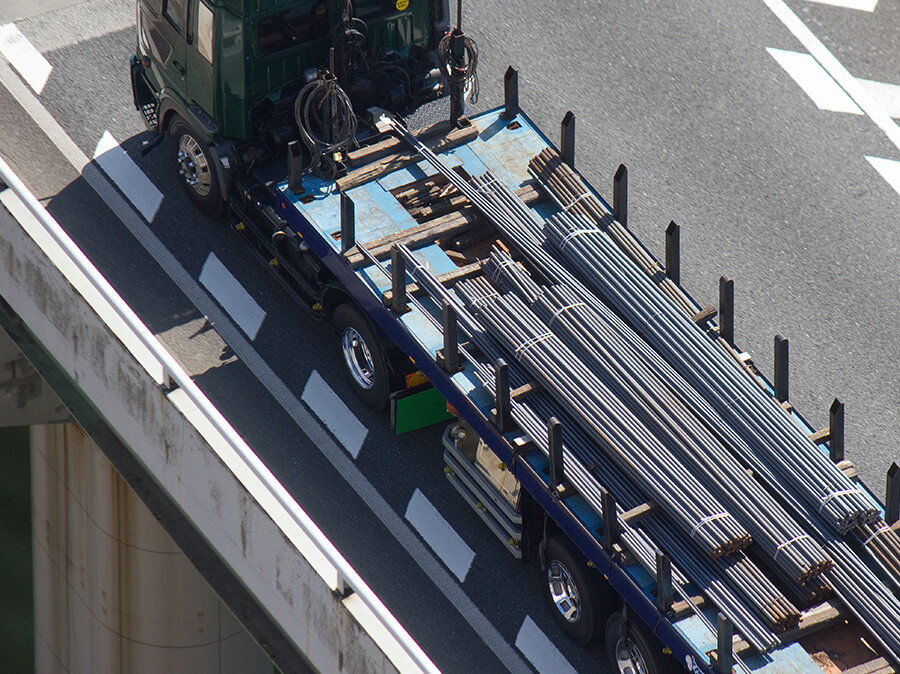 新築の基礎工事などで必要な鉄筋をお運びします。高い技術をもったスタッフが、丁寧・確実に作業。鉄筋を加工した状態での運送も承っていますので、さまざまな案件のご要望にお応えできます。